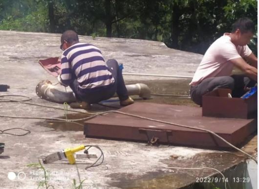 2022年9月19日,在小石橋水務(wù)公司人員配合下玉溪分公司對高位水池加裝自動浮球閥設(shè)備。