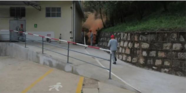 本次演練分兩場分別實施:第一場演練模擬硝酸銨倉庫側面電器線路短路引發(fā)土堤枯草著火,火勢迅速蔓延,偏坡上大片枯枝、枯草著火,現(xiàn)場工作人員發(fā)現(xiàn)后立即按生產(chǎn)安全事故應急預案進行處置;第二場演練模擬3名“恐怖分子”偽裝為總庫區(qū)外來施工人員進入總庫區(qū)盜搶爆炸物品,現(xiàn)場工作人員發(fā)現(xiàn)后立即按防范恐怖事件專項應急預案進行處置。