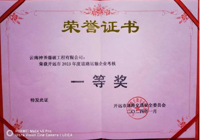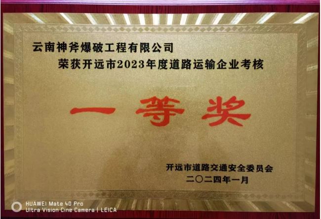 【新聞】云南神斧爆破工程有限公司榮獲開(kāi)遠(yuǎn)市2023年度道路運(yùn)輸企業(yè)考核一等獎(jiǎng)