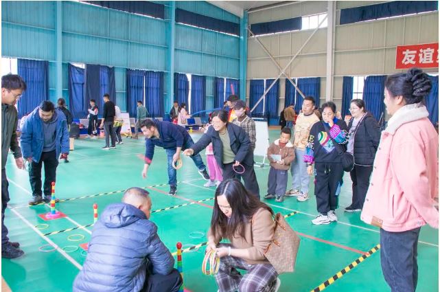 下午1點(diǎn),“送萬福·進(jìn)萬家”迎新春書法文化公益活動(dòng)、趣味飛鏢、趣味套圈、粘靶投擲、蒙眼敲鑼、盆滿缽滿、步步為營、母雞下蛋、蒙眼對決等個(gè)人及團(tuán)隊(duì)游戲在總部羽毛球館拉開序幕,每一個(gè)游戲都在挑戰(zhàn)參與者的技巧和運(yùn)氣,贏下游戲獲得獎(jiǎng)券,集滿1—10張獎(jiǎng)券就可以兌換不同的新春獎(jiǎng)品。
